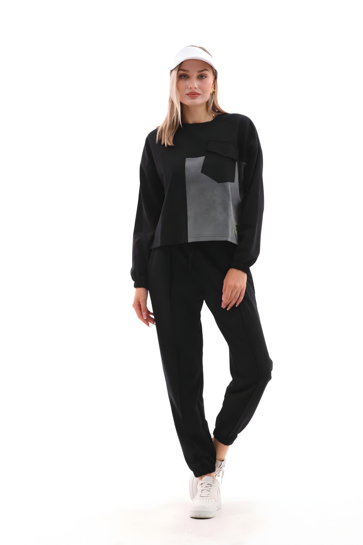 WestboundCep Detaylı Kot Parçalı Siyah Eşofman Takım