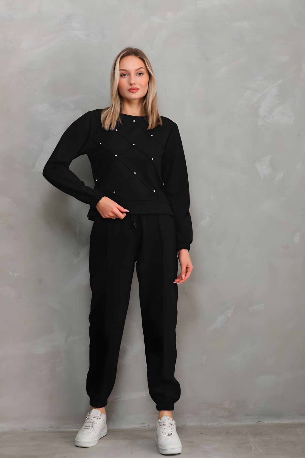 WESTBOUND - Kadın Taş Detaylı Günlük Eşofman Takımı SİYAH- 682