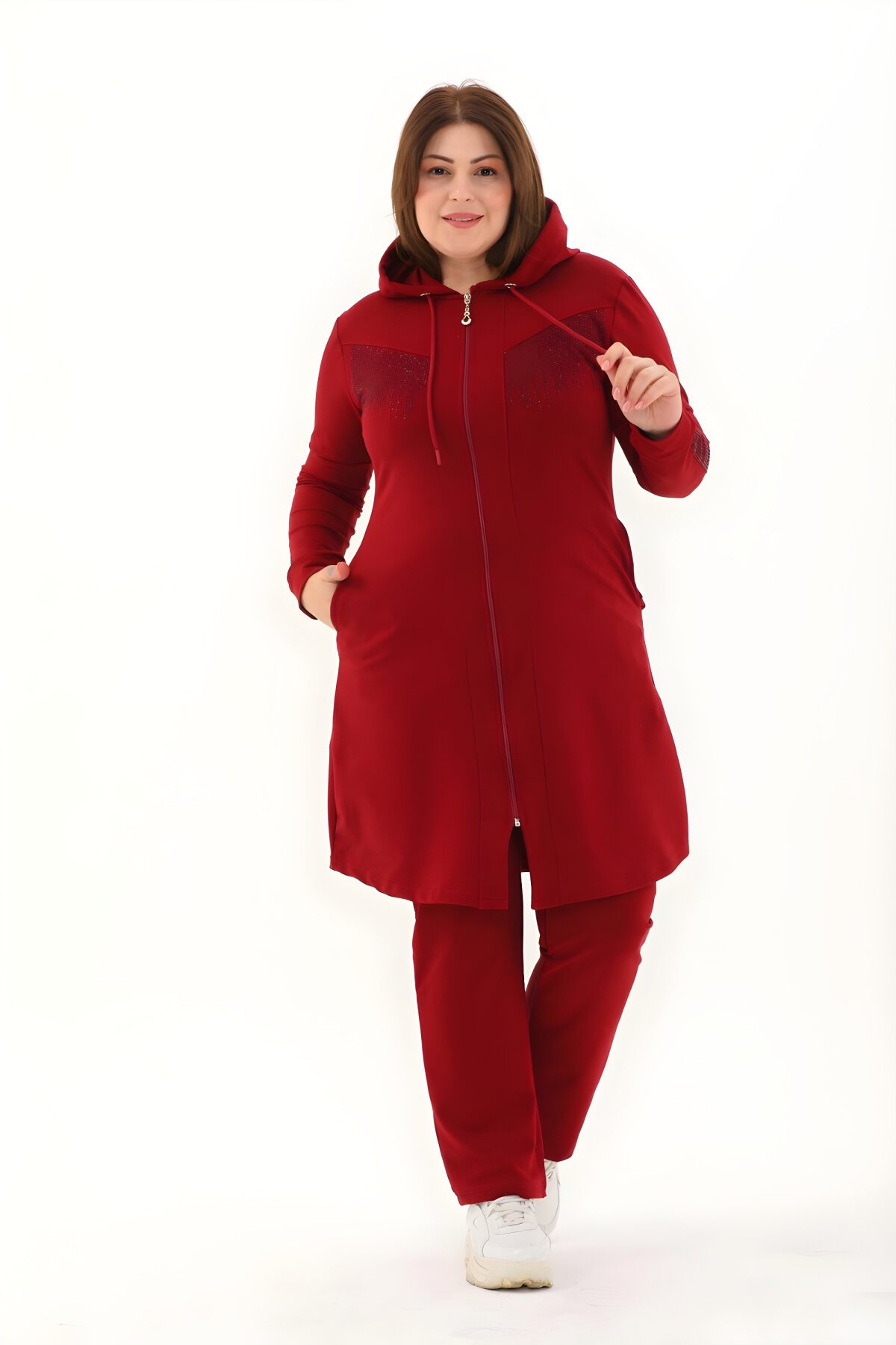 Kadın Büyük Beden Bordo Tesettür Eşofman Takımı