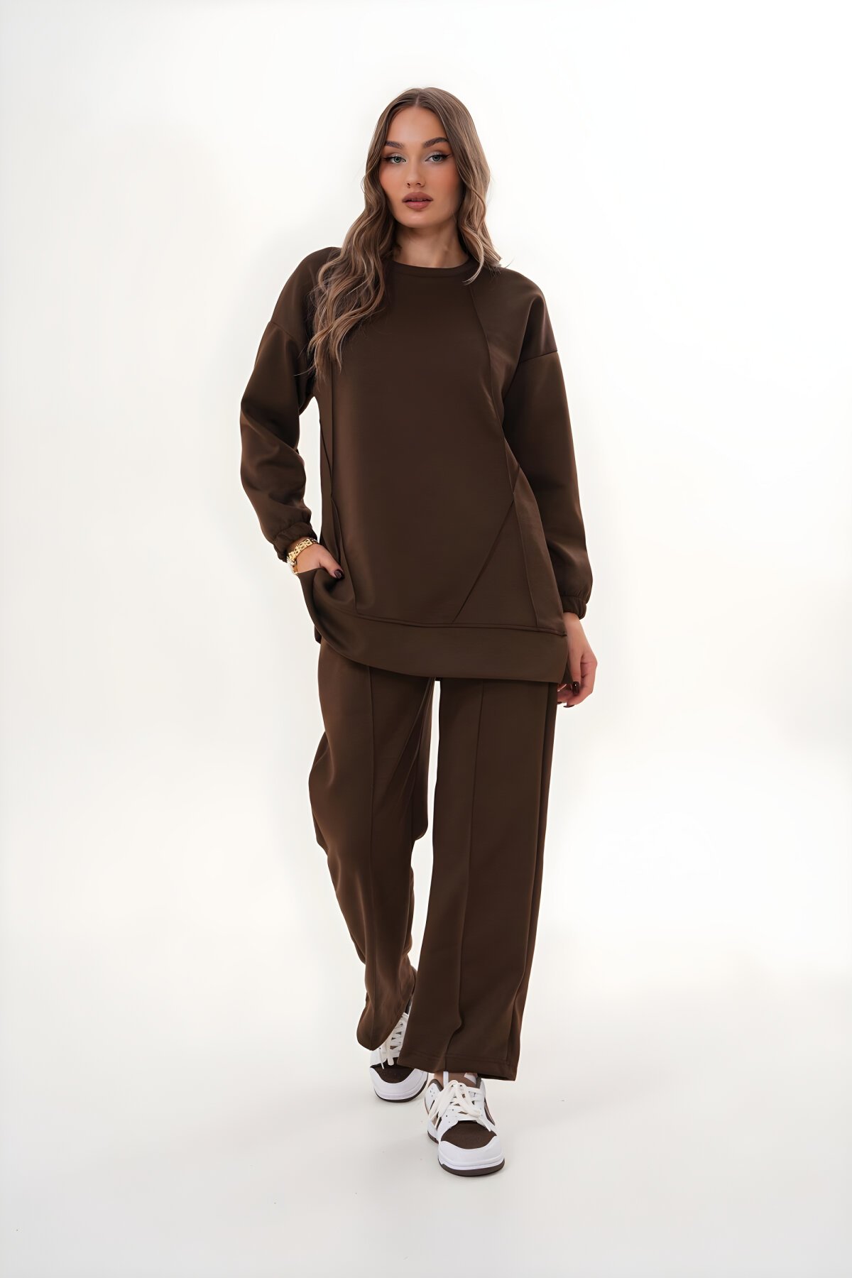 Kahverengi Bisiklet Yaka Eşofman Takımı ile hem rahatlığı hem de şıklığı yakalayın. Modest giyim standartlarına uygun olarak tasarlanan bu konforlu takım, günlük ve spor aktiviteleriniz için idealdir. westbound markasının kalitesiyle Devr-i Tesettür güvencesiyle hemen sipariş verin.
