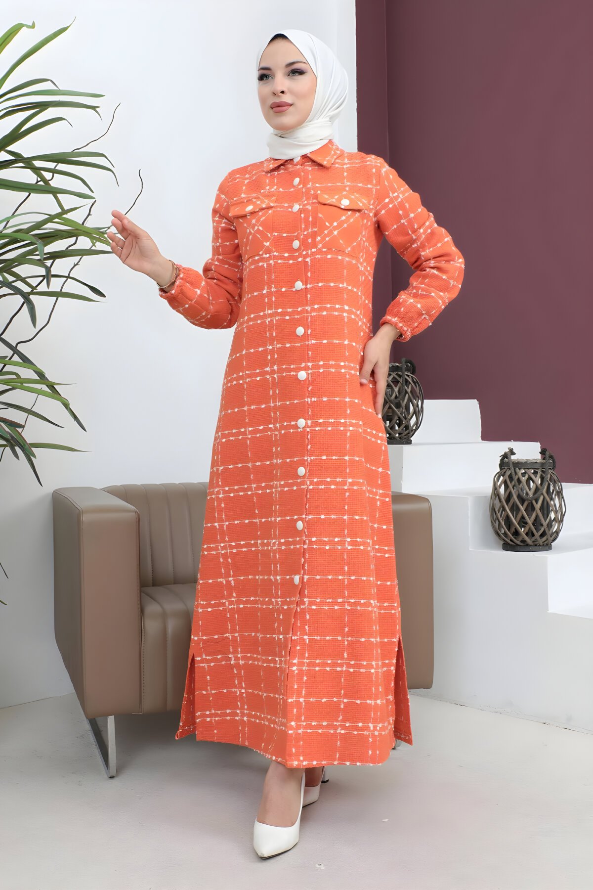 Kış aylarının vazgeçilmezi Turuncu Düğmeli Kaşe Kaban ile şıklığı yakalayın. Modamihram markasının bu göz alıcı ve sıcak tutan kaşe modeli, tesettür giyim tarzınıza modern bir dokunuş katıyor. Uzun ömürlü kaşe kumaşı ve özel düğme detayları sayesinde hem resmi hem de günlük kombinleriniz için ideal. Devr-i Tesettür güvencesiyle hemen keşfedin.
