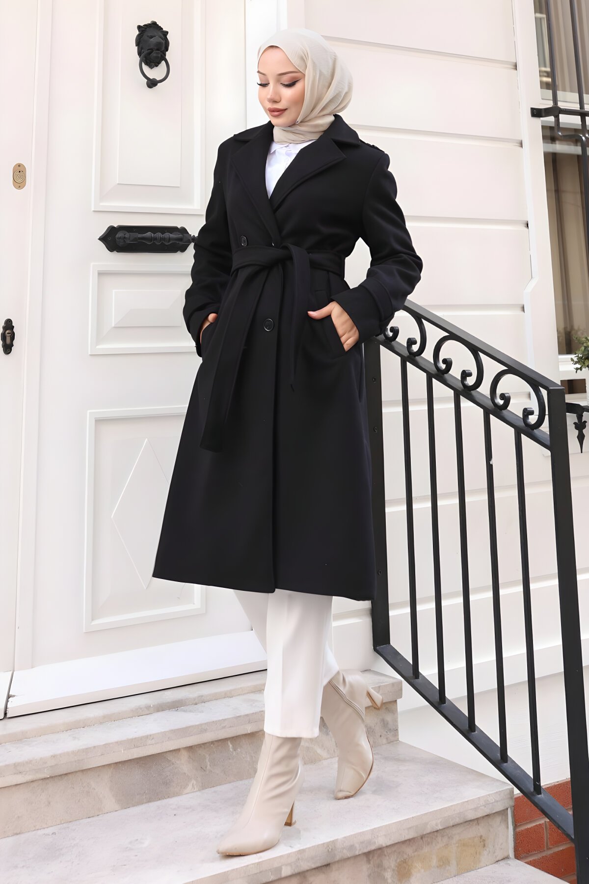 Kış aylarının vazgeçilmezi siyah kuşaklı kaşe kaban modeli Modamihram kalitesiyle Devr-i Tesettür'de sizleri bekliyor. Soğuk havalarda sıcak tutacak kaşe kumaşı ve ayarlanabilir kuşak detayı sayesinde hem şık hem de rahat bir görünüm elde edin. Hemen keşfedin!