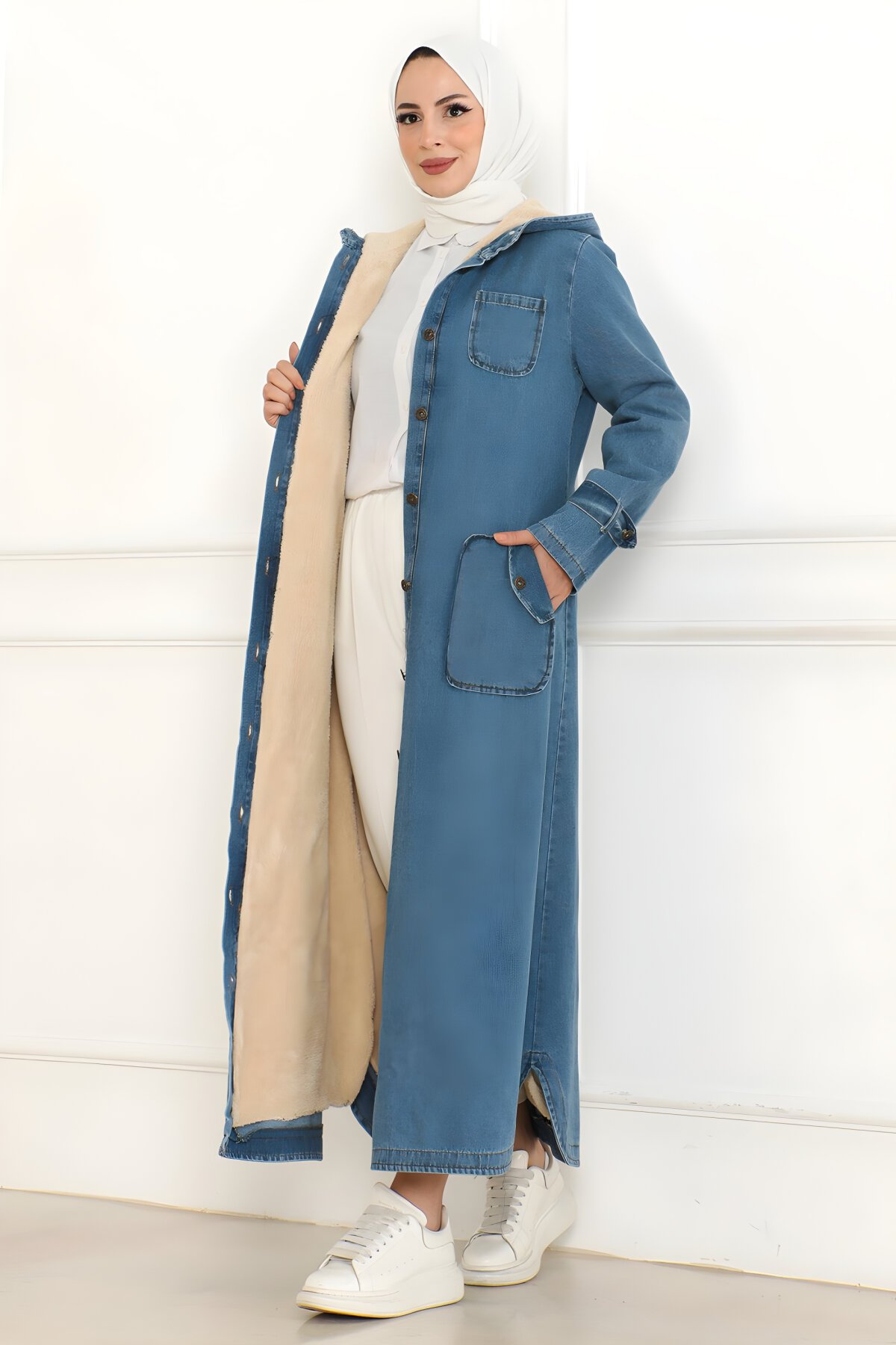 Devr-i Tesettür kalitesiyle Modamihram markasına ait Açık Mavi Kapüşonlu Kot Mont, sonbahar ve kış kombinlerinizin vazgeçilmezi olacak. Rahat kesimi ve dayanıklı kot kumaşı sayesinde gün boyu konfor sunar. Şıklığı ve kullanışlılığı bir arada arayan tesettür giyim tutkunları için ideal bir dış giyim ürünüdür. Hemen keşfedin!