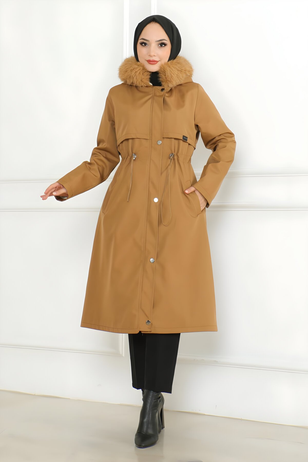 Ürün Özelliği : Yeni sezon tesettür moda ürünüdür. Kürk astarlıdır. Önden kullanılabilir gizli fermuarı ve çıtçıt bulunmaktadır. Beli bağcıklıdır. Cep mevcuttur. Kap şonludur. Ürün renginde konsept çekimlerinden dolayı ton farklılığı olabilir.