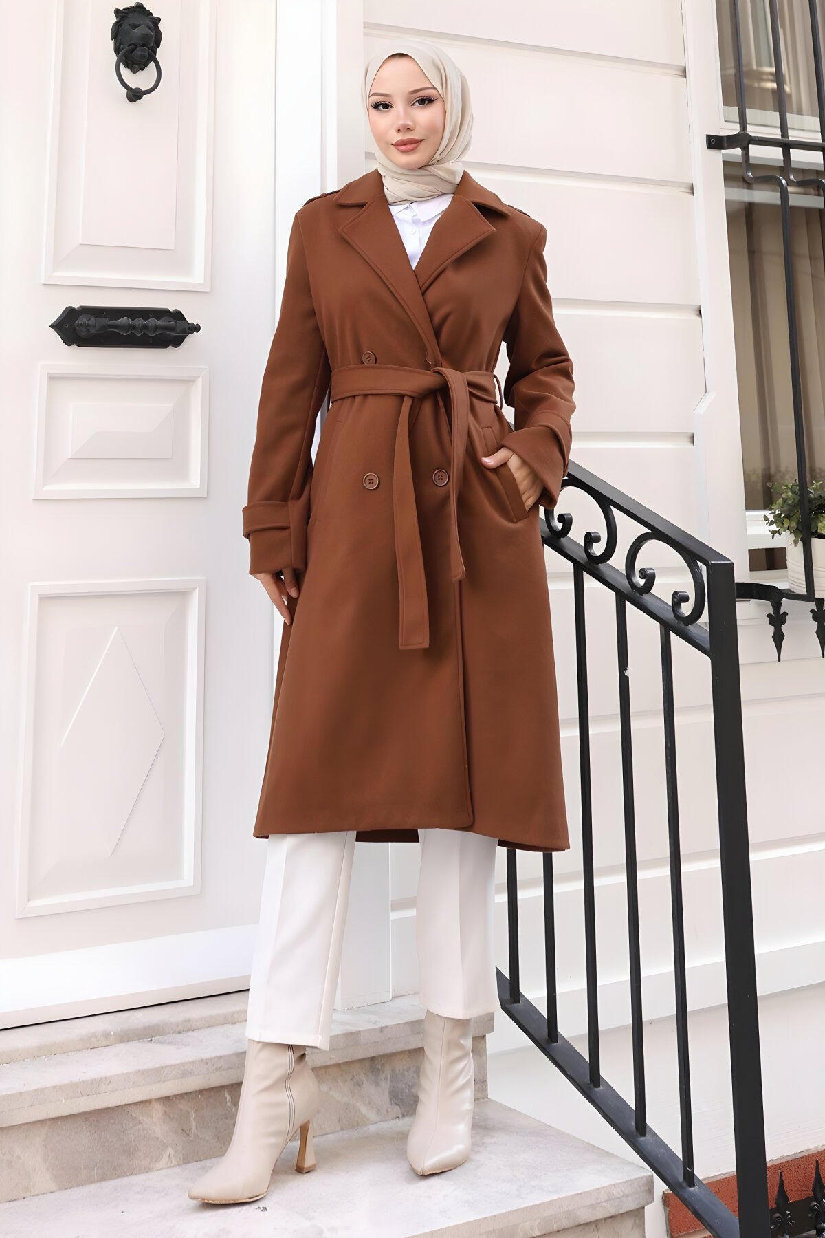 Devr-i Tesettür'ün seçkin markalarından Modamihram, bu kış sezonu için özel olarak tasarlanmış Kahverengi Kuşaklı Kaşe Kaban modelini sunuyor. Soğuk havalarda sizi sıcak tutacak bu şık ve modern tesettür kaban ile hem rahatlığı hem de zarafeti yakalayın. Uzun kesimi ve kaliteli kaşe kumaşı ile dört mevsim kombinlerinizin vazgeçilmezi olacak.