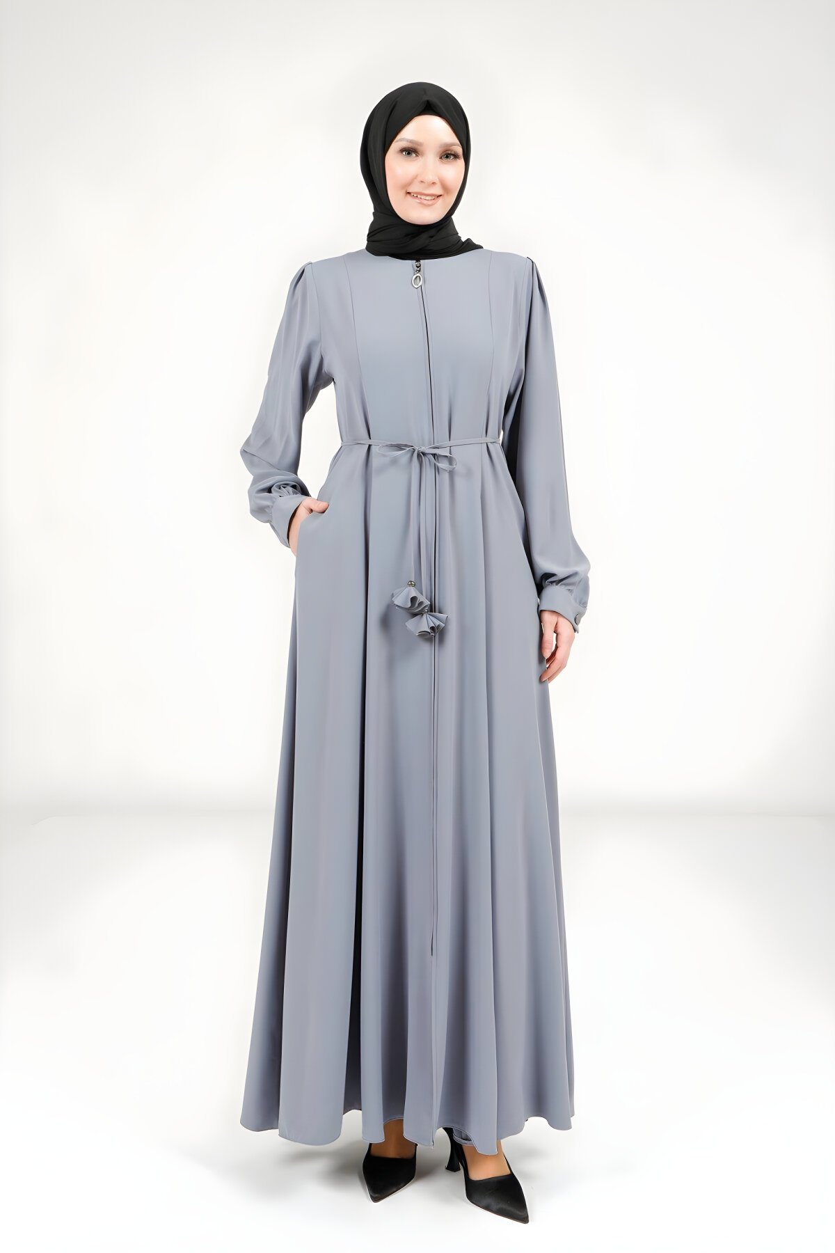 اكتشفي الأناقة العملية مع عباية Beyza الرمادية ذات التفاصيل الفريدة. هذه الفراجه العصرية، المتوفرة حصريًا لدى Devr-i Tesettür، تتميز بتصميمها الفضفاض والمحتشم، مزودة بسحاب أمامي عملي وتفاصيل ربط جانبية تضفي لمسة جمالية مميزة. مثالية للإطلالات اليومية والعمل.