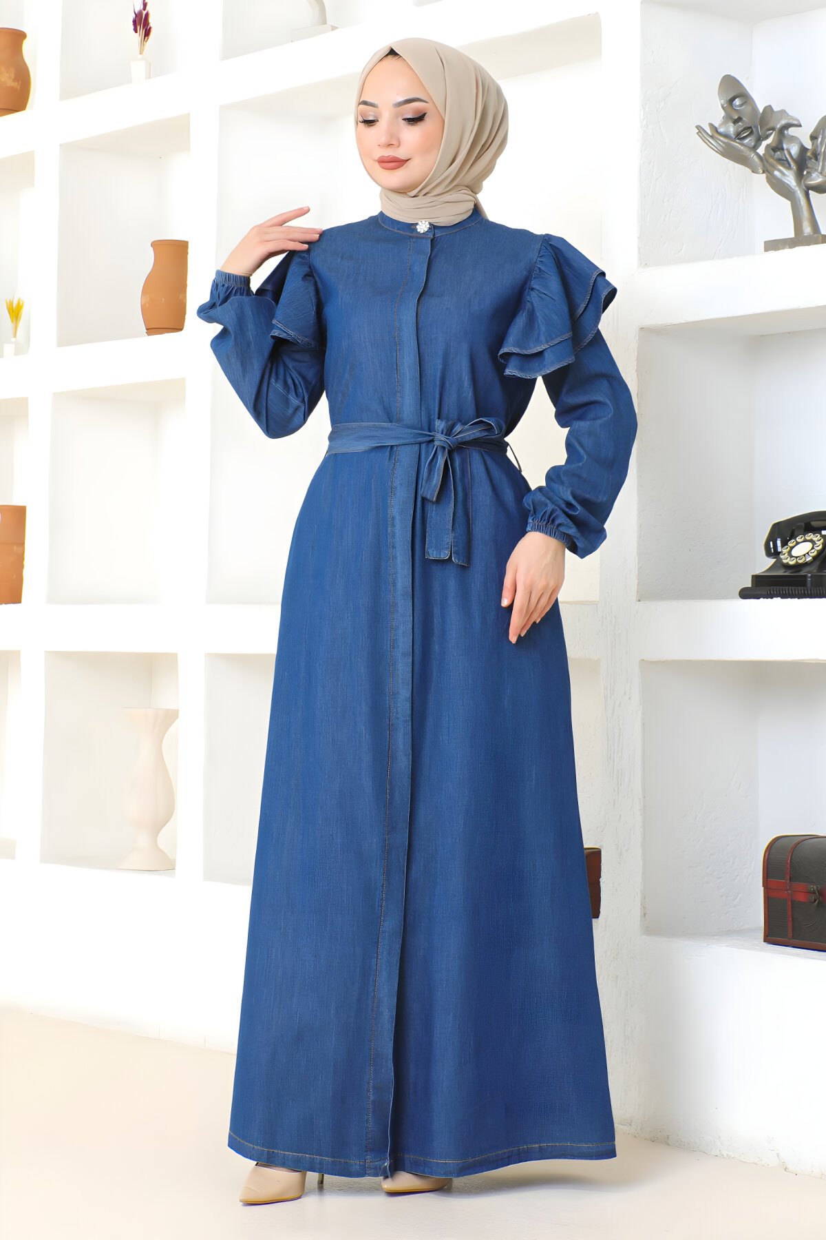 اكتشفي الأناقة المحتشمة مع عباية Modamihram المتميزة باللون الأزرق الداكن. تتميز هذه العباية بتفاصيل أنثوية راقية مثل الأزرار الأنيقة والأكتاف المكشكشة، مما يمنحها لمسة عصرية ومميزة. مثالية لإطلالة نهارية أو مسائية راقية. تسوقي أحدث صيحات الموضة المحتشمة عبر منصة Devr-i Tesettür.