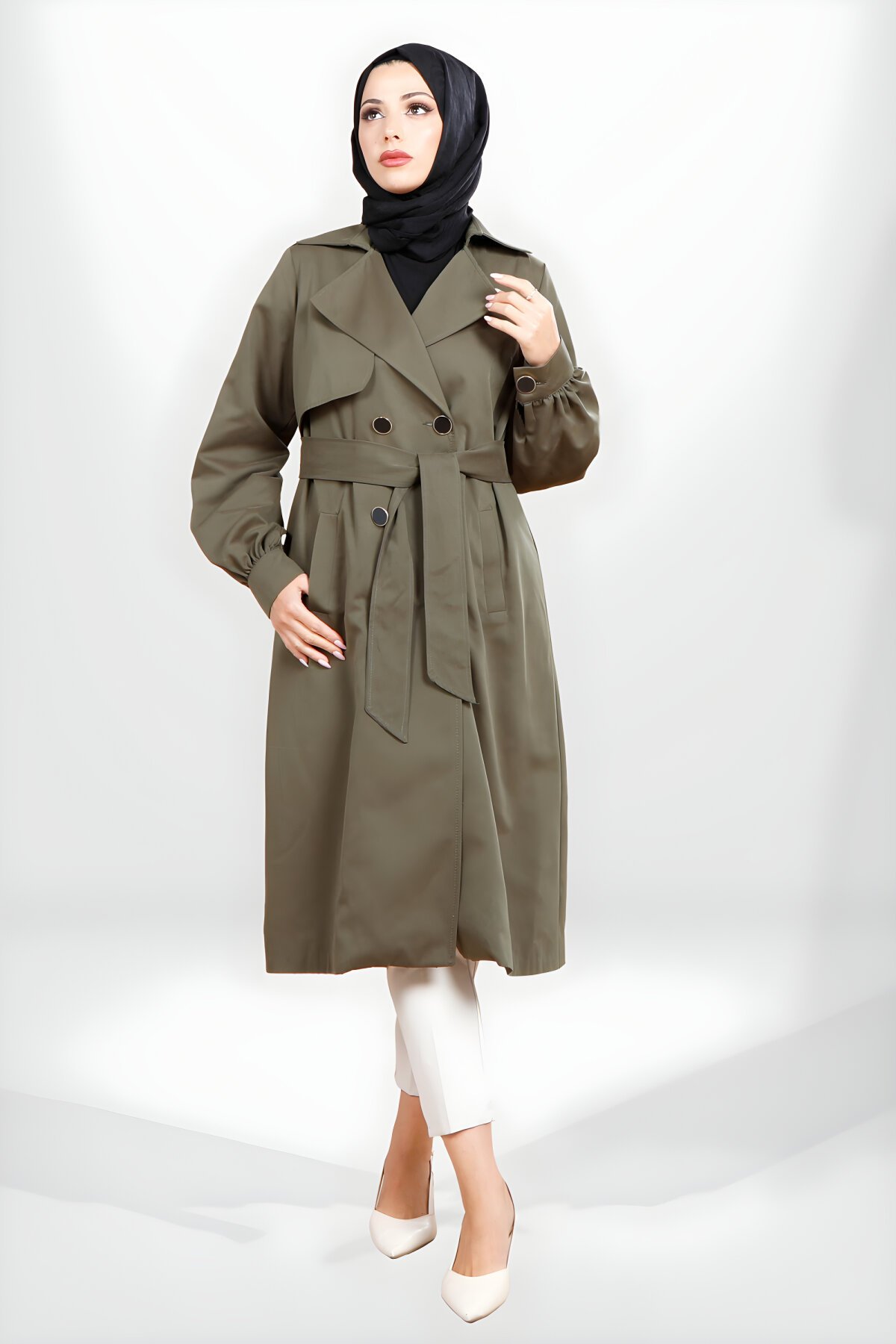 اكتشفي الأناقة العملية لهذا الموسم مع معطف ترنش كاكي مثالي من ماركة Beyza. يتميز المعطف بتصميم محتشم، مع أكمام مزمومة عصرية وتفاصيل حزام وأزرار أمامية. يوفره لكِ Devr-i Tesettür، وجهتكِ الأولى لأزياء المحجبات الراقية. قطعة أساسية لا غنى عنها لإطلالتك اليومية والأنيقة.