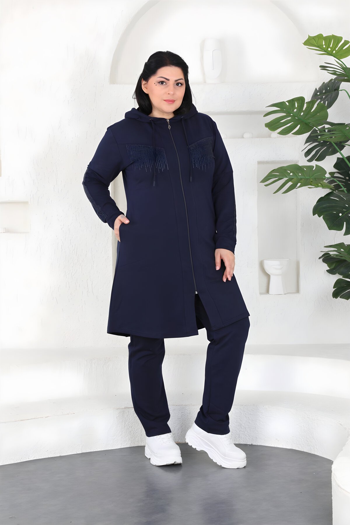 استمتعي بالراحة والأناقة مع الطقم الرياضي الكحلي بمقاس كبير، المثالي للمرأة المحتشمة. هذا الطقم من Westbound يوفر لكِ تغطية كاملة وحركة سلسة، مما يجعله الخيار الأمثل ليومك النشط. تسوقيه الآن حصرياً عبر منصة Devr-i Tesettür لملابس المحجبات.