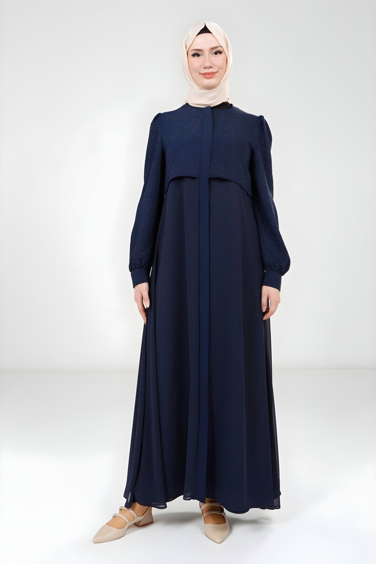 تسوقي إطلالتك المحتشمة المثالية الآن عبر Devr-i Tesettür. نقدم لك عباية Beyza الأنيقة والطويلة باللون الكحلي الغني، مزينة بتطريز دقيق من الأحجار المتناثرة التي تضيف لمسة من التألق. تصميم يضمن لك الأناقة الكاملة والراحة المطلقة في جميع مناسباتك المختلفة. اكتشفي تشكيلتنا الواسعة من أرقى الأزياء المحتشمة.