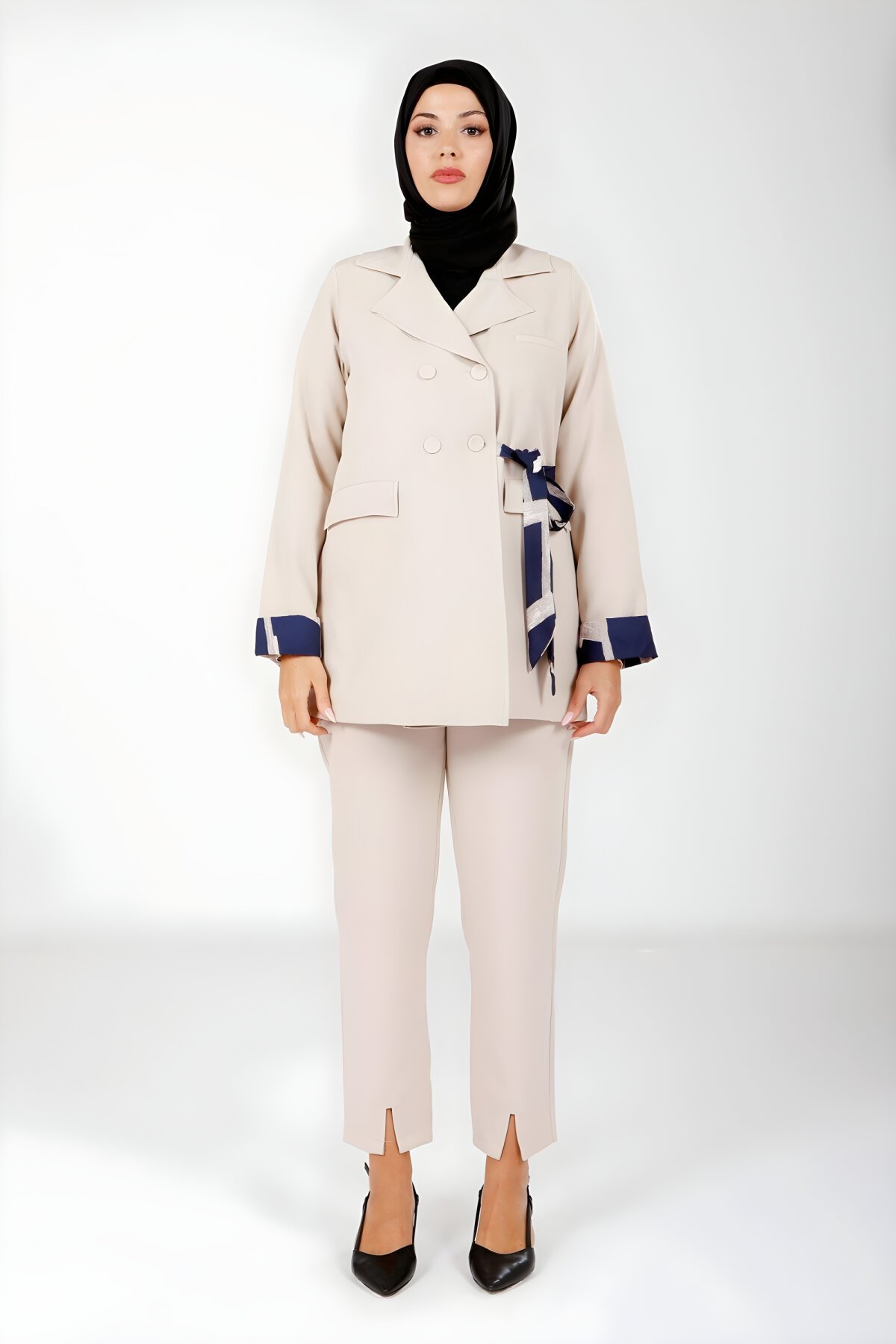 Beyzaطقم أنيق محتشم (جاكيت وبنطلون) مزين بتفاصيل أحجار على الأكمام
