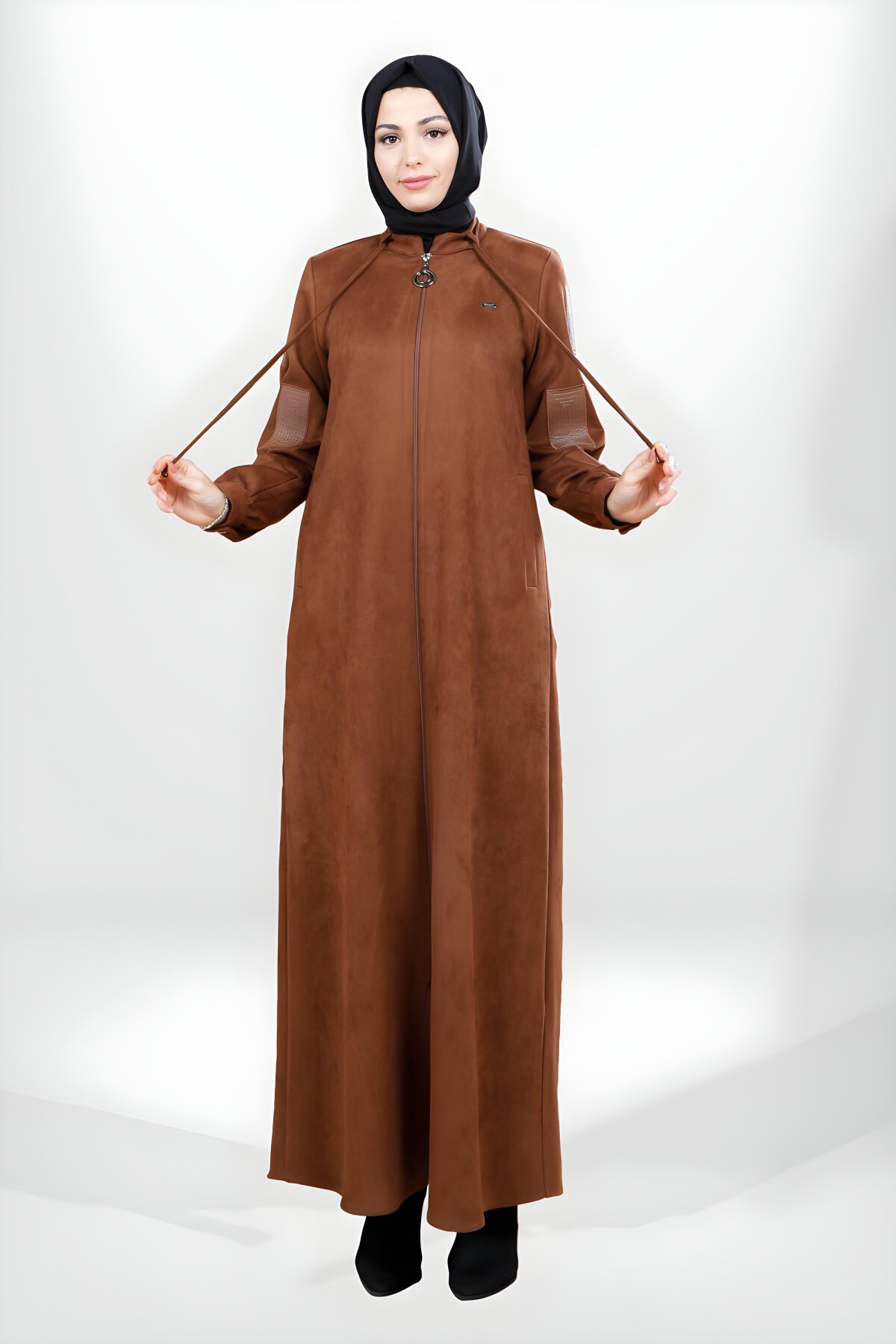 Discover the luxurious Beyza Winter Weight Zip-Up Abaya, perfect for cooler weather. This stunning Mink-colored Ferace features beautiful embroidered sleeves and a practical zip closure, blending modesty and modern utility. Find this and other exclusive modest wear pieces only at Devr-i Tesettür, your premier marketplace for curated modest fashion.