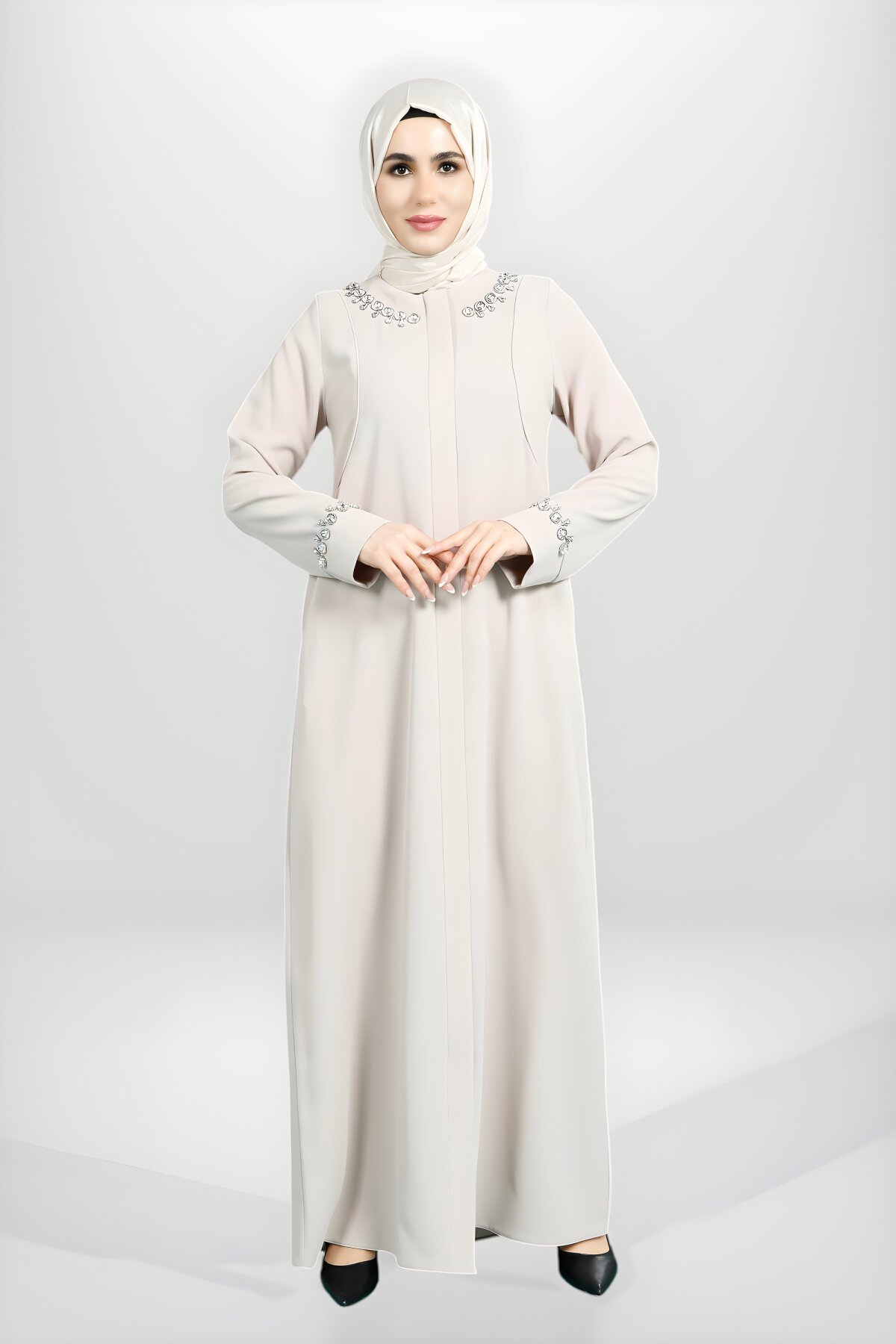 Discover the elegant Stone Embellished Ferace by Beyza, a perfect example of contemporary modest clothing. This sophisticated Abaya features a stylish zippered neck detail, offering both comfort and refinement for any occasion. Find this exclusive design and hundreds of other quality modest pieces only at Devr-i Tesettür, your trusted marketplace for Islamic fashion.