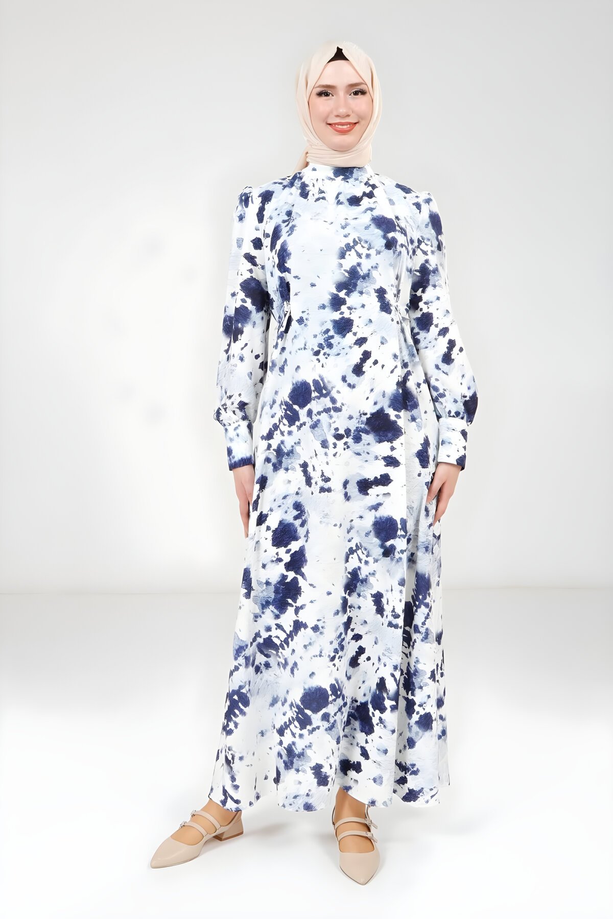 Discover the elegant Navy Printed Modest Dress by Beyza, exclusively available at Devr-i Tesettür. This essential piece for your modest wardrobe features a stylish print, a flattering fit, and a versatile detachable belt, offering comfort and sophistication for any occasion. Explore high-quality modest clothing today.