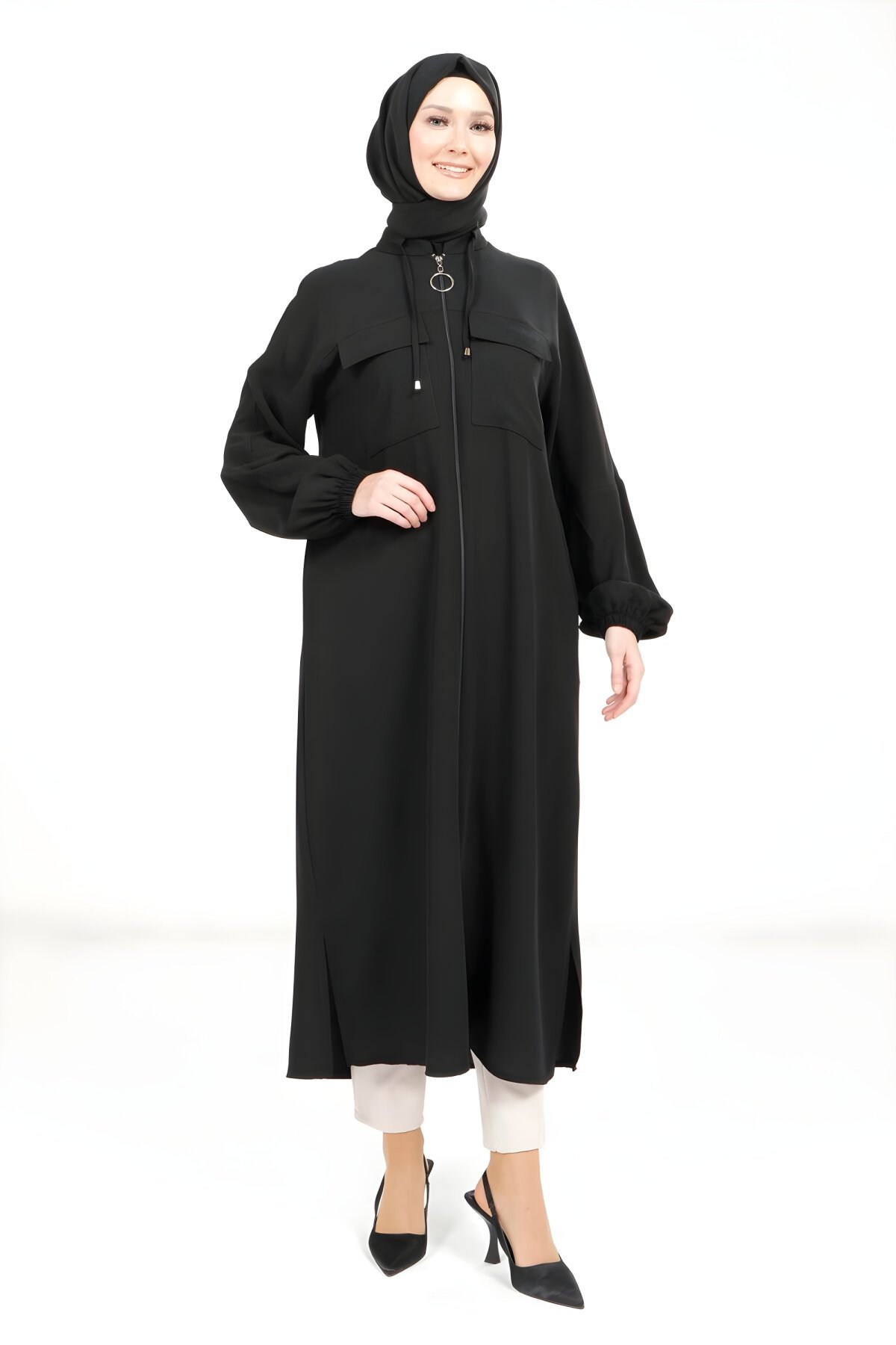 Discover the ultimate effortless modest outerwear piece. This classic black throw-on coat from Beyza features a convenient full zipper detail, making it perfect for busy days. Shop high-quality, curated modest fashion exclusively on Devr-i Tesettür. Find your essential modest coat today.