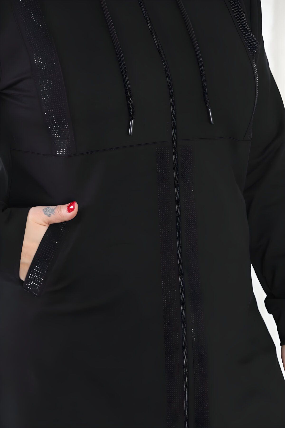 WestboundOversize Modest Tracksuit Set with Zippered Hood and Stone Detail in Black