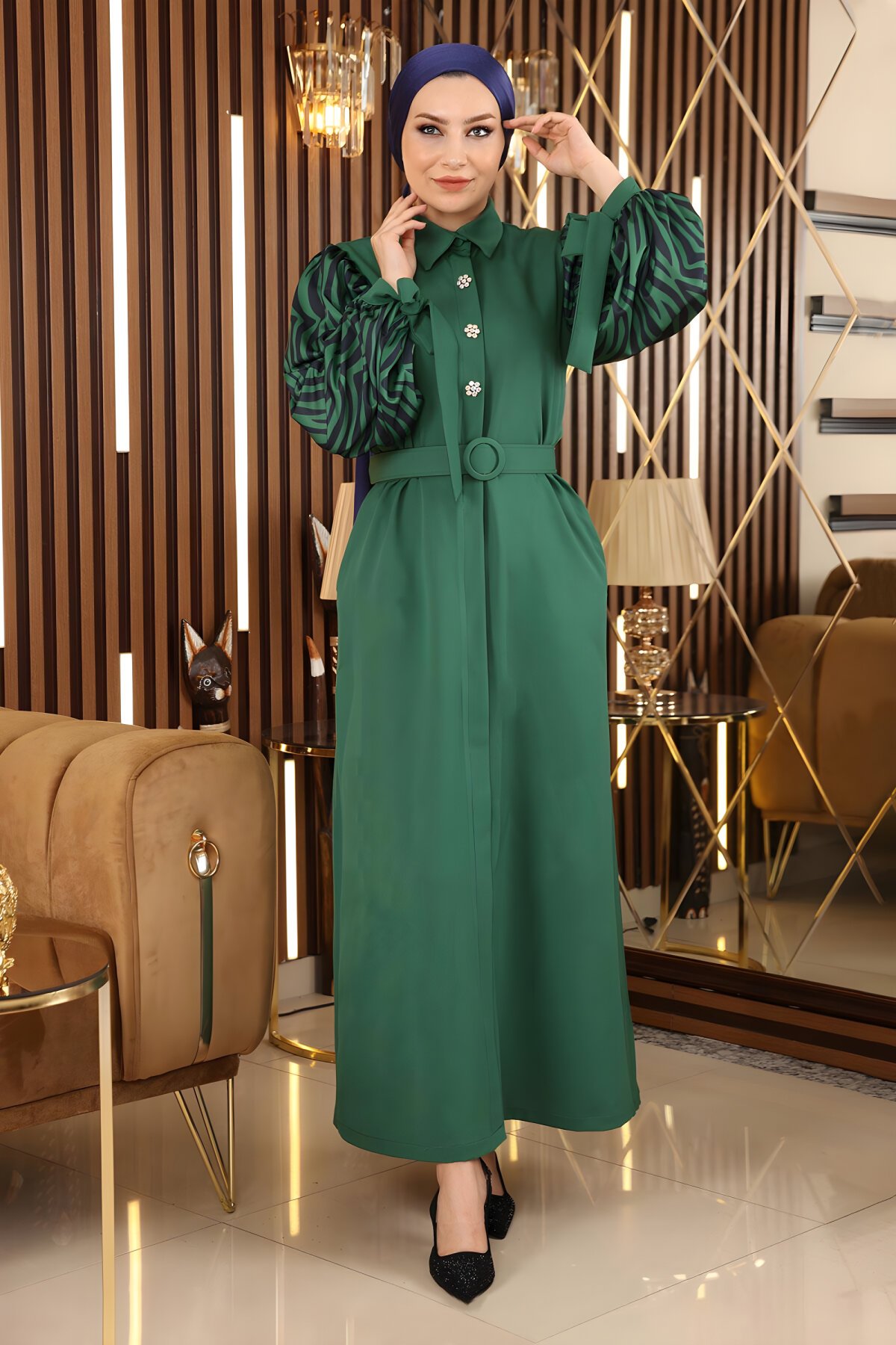 Discover the stunning new Patterned Ferace Abaya from Modamihram, exclusively available at Devr-i Tesettür. This elegant modest cloak features intricate patterns and delicate emerald stone embellishments, providing a sophisticated look for special occasions or daily wear. Shop the latest Abaya styles that combine comfort and luxury.
